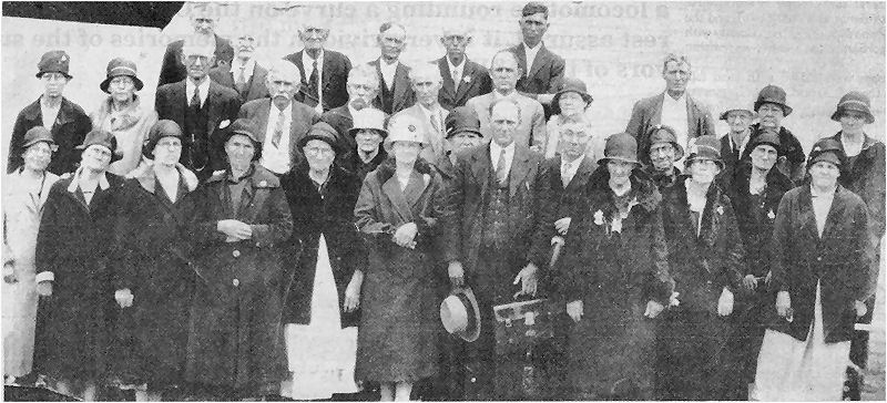As a follow-up to our stories on the Oak Grove section of Oneida, in general, and the Bethlehem Baptist Church, in particular, (FNB Chronicle, October 3, 1996), RONALD BREWSTER of Oneida brought this old photo by . . . with identifications for all but two of those pictured here. First row, from left: MARY SLAVEN, LUCINDA KEETON, ELIZABETH MAYS (mother of BILL MAYS), MINDY COFFEY (ODIE CRABTREE’s grandmother), Aunt POP THOMAS, MISSOURI BILBREY, MARTHA LITTON, unknown, RUBEN JONES (pastor), SAM GARRETT, REBECCA JEFFERS (an aunt of CALDWELL TERRY), MINDY COFFEY(?), Aunt LINA TERRY and NANCY ANN LITTON (an aunt of CALDWELL TERRY). Second row: NANCE BEETS (mother of JOHNNY BEETS), Mrs. DAN ACRES, DAN ACRES (father of JIM ACRES, grandfather of CHARLIE ACRES), RANS LITTON (or NELSON LITTON), BART TERRY (father of HARRISON TERRY), RUBEN HUNT (uncle of HARRY COFFEY), JOHN SMITH, EMMA SMITH, LOUIS COFFEY (grandfather of RALPH COFFEY), LOUVERNA WATERS and Mrs. JOHN SMITH. Back row: HOUSTON BLEVINS, JESSIE BILBREY, FINLEY THOMAS, (unknown), WILL LITTON and SAM JONES (father of ELLIS and WALTER JONES). |