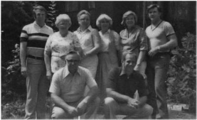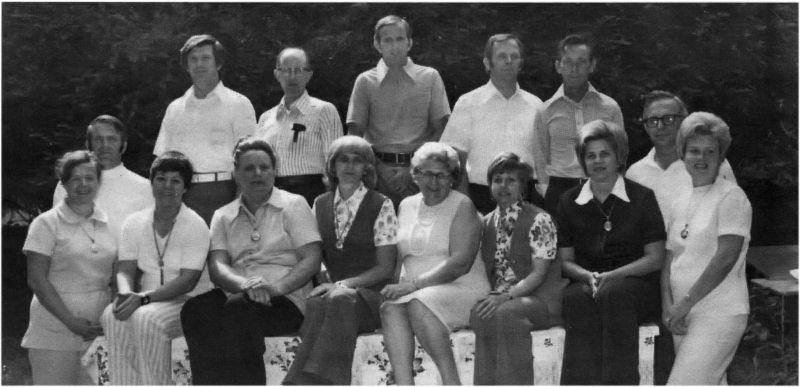 | Smith Family Reunion – Front row, from left: Nadine Smith, Gil Smith, Clara Jo Brown, Barbara Walls, Thelma Smith, Barbara Smith, Alma Partain, and Joyce Smith. Back row: Bill Smith, Bobby Smith, Bill Brown, Rondald Walls, Tommy Smith, Ray Partain, and Carlyle Smith. | |