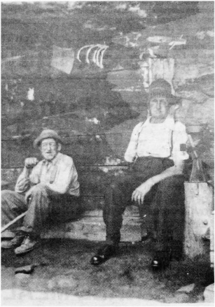 Alvin Smith (right) relaxes with Crusoe West in the shade of the cliff overhang at West’s cave-home. |