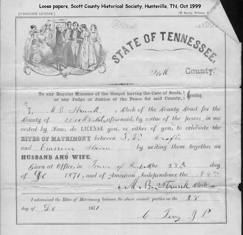 | Blankenship, James | Trammell, Emeline | 13 Aug 1871 | |||