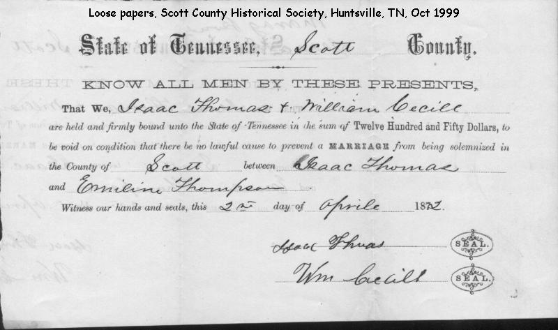 | Thomas, Issac | Thompson, Emiline | 2 Apr 1872 | 4 Apr 1872 | ||