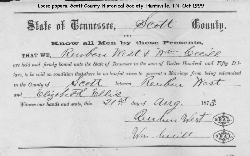 | West, Reuben | Ellis, Elizabeth | 21 Aug 1873 | |||