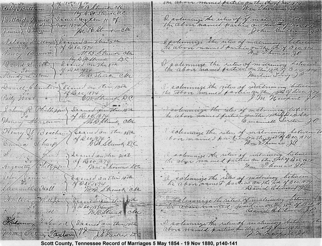 | Botts, Johathan | Honeycutt, Nancy L. | 12 Sep 1874 | |||