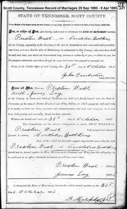 | West, Preston | Bollkins[Boelkins], Cordelia | 30 Oct 1880 | 30 Oct 1880 | 30 Oct 1880 | |
