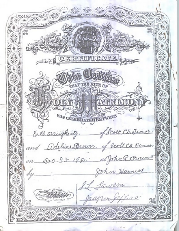 | Daugherty, E. D. | Brown, Adeline | 22 Dec 1881 | |||