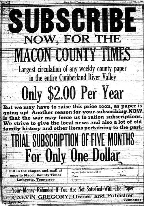 Housed Cal'S "Macon County Times" Newspaper Business.