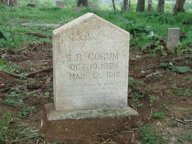 located the upright headstone of the wife of S.R. Corum. Where was his grave?