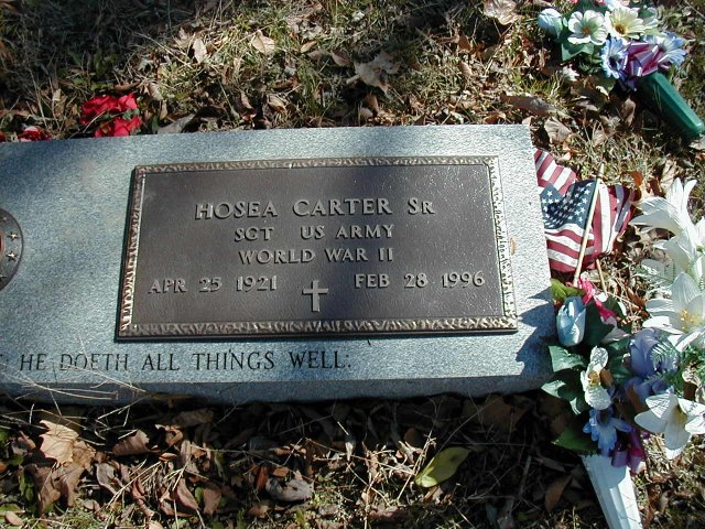 Carter, Hosea Jr. 25 Apr 1921-28 Feb 1996 Sgt. US Army WWII