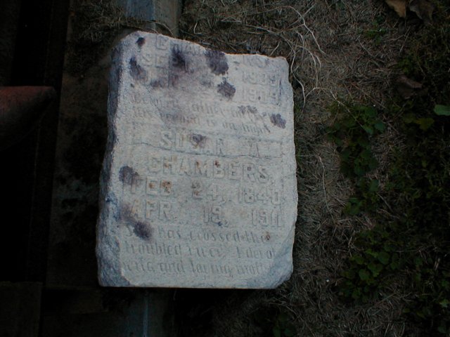 Also buried here Dora P. (Nallie) Russell Chambers wife of Robert King Chambers