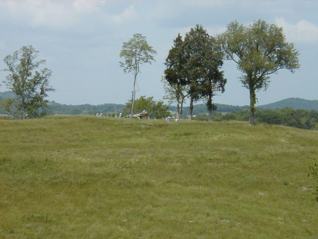 Brush Creek community. It is on a high grassy hill visible from road but