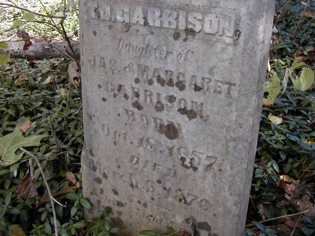 Garrison, T.J. 18 Oct 1857 - 6 Mar 1876 d/o Jas. & Mar.
