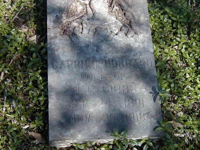 Gibbs, Carrie P. (Hubbard) w/o J.R.Gibbs Sept. 24, 1881 - Nov. 26, 1916