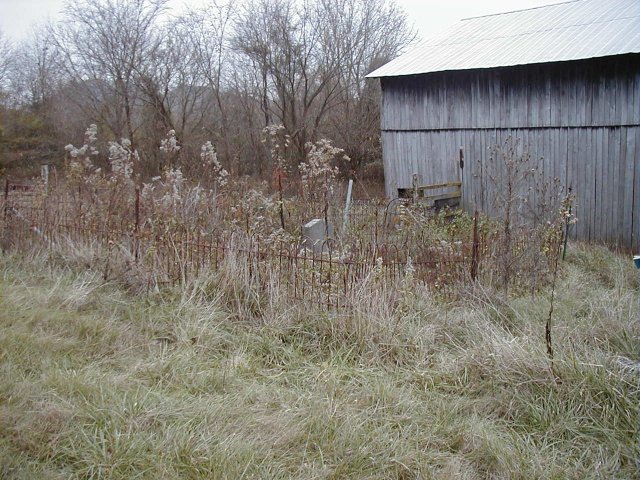 the house and above the barn. It is enclosed by a iron fence.