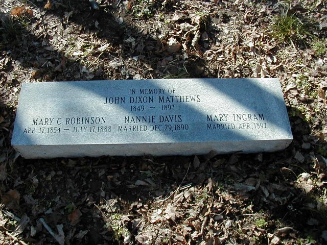 Claiborne Matthews & Sara Phillips), and wife Mary C. Robinson 1854-1888, (D/O Burrell