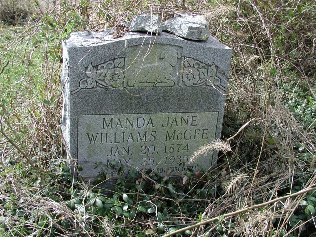 near the intersection of Bluff Creek Road. The grave of Manda Jane Williams