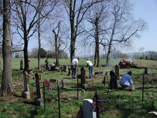 This stone was set previous to this cleanup by the Sons of Confederate Veterans.