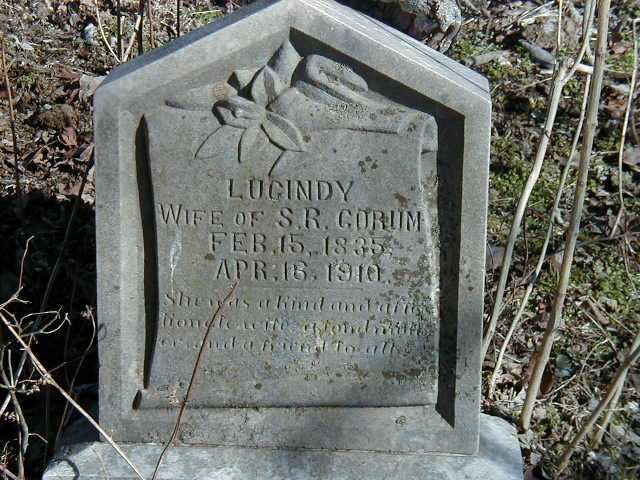 Corum, Lucindy 15 Feb 1835--16 Apr 1910 W/O S.R.