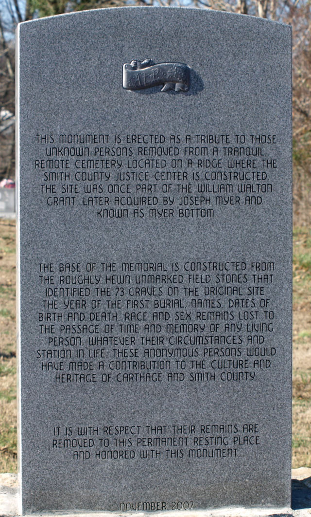 cemetery located on a ridge where the Smith County Justice Center is constructed. The site was