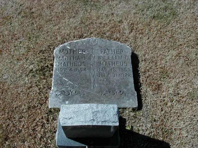 Jan 1855 - 31 July 1922 Martha F Matheus Nov 4 1854 - ---)