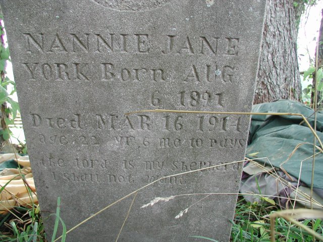 York, Nannie Jane 6 Aug 1891- 6 Mar 1914 Age 22