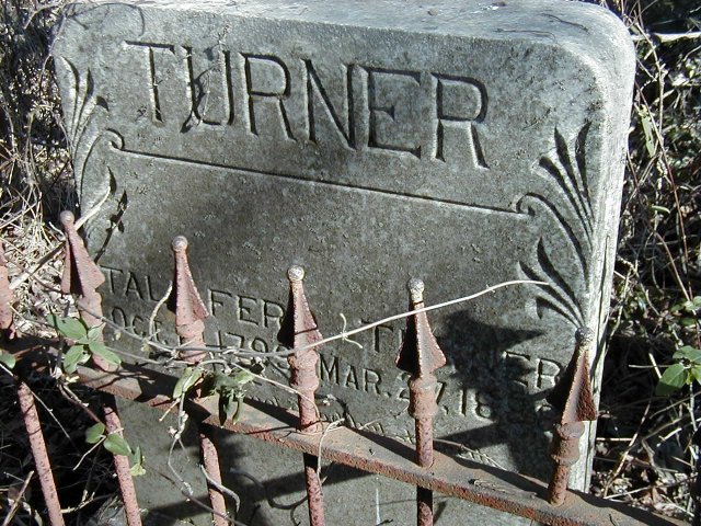 Turner, Martha A. 7 Mar 1834 - 29 Oct 1887 d/o Taliafero