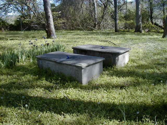 which are marked by stone boxes. DAR plaques are on each box. Other early settlers