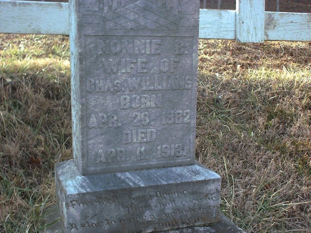 Nonnie B. Williams wife of Charlie Williams April 26, 1882--April 11, 1913