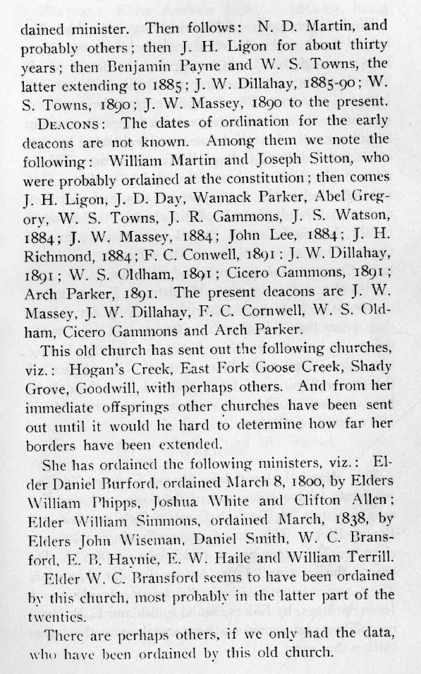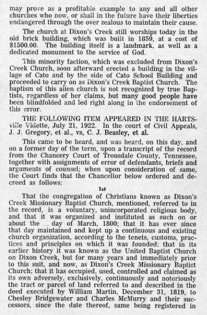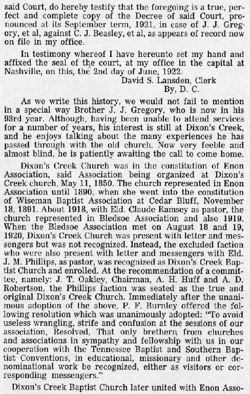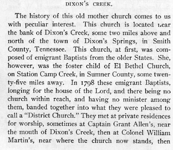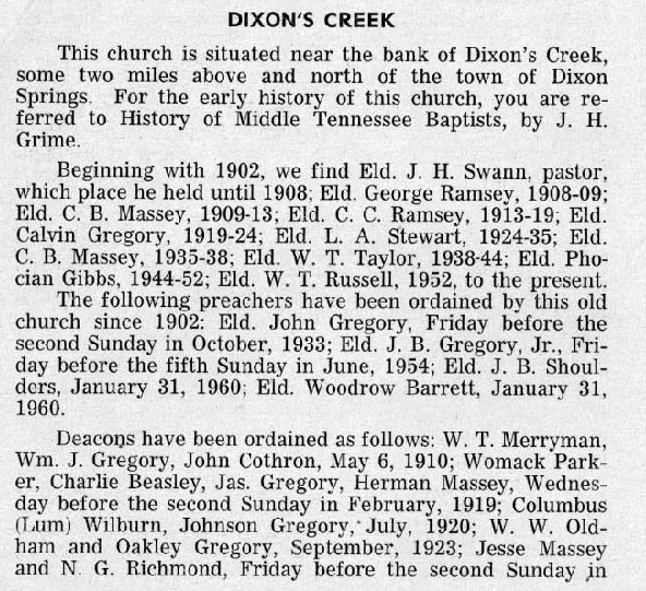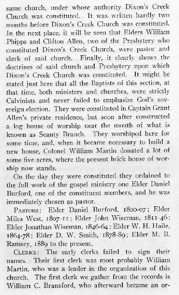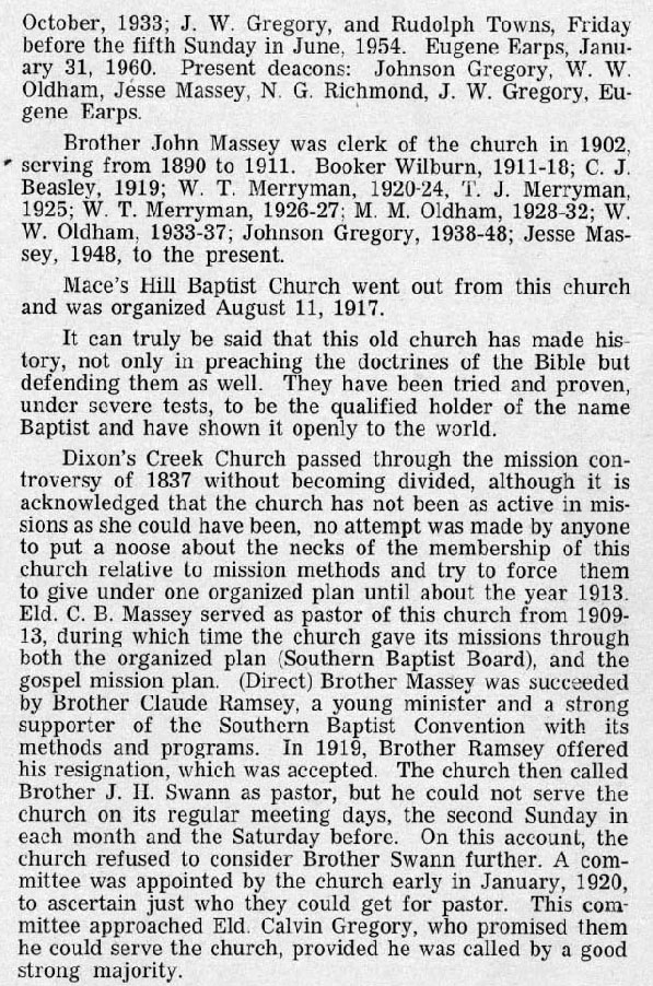The Following History Of Dixon's Creek is from "Twentieth Century Baptist" pages 208-219