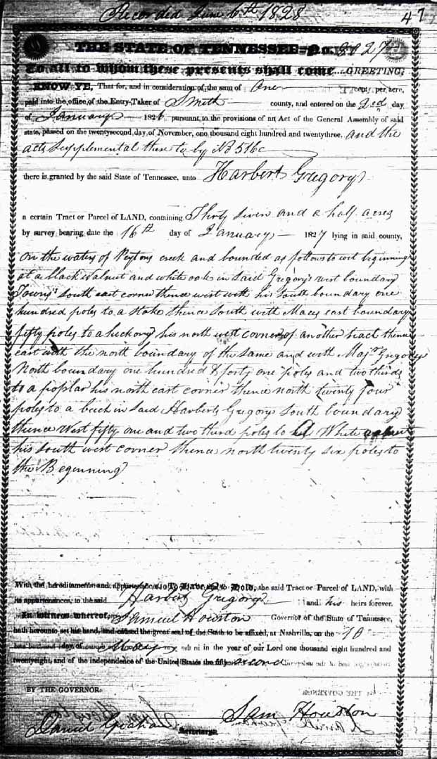 In witness whereof, Samuel Houston Governor of the State of Tennessee,