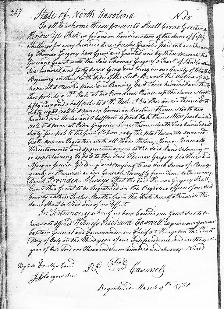 unto the said Thomas Gregory a tract of land containing six hundred and forty