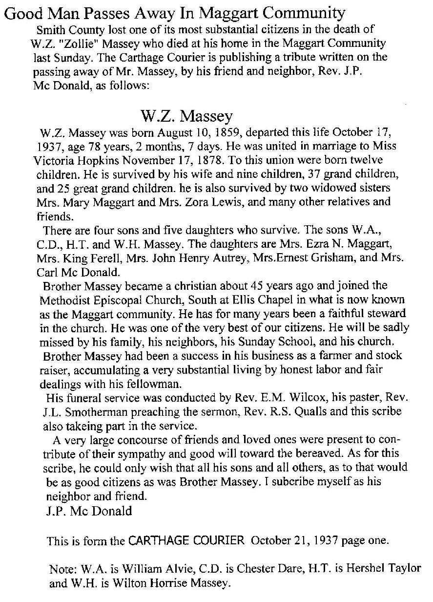 Go To William Zolliecoffer (Zollie) Massey Family Picture