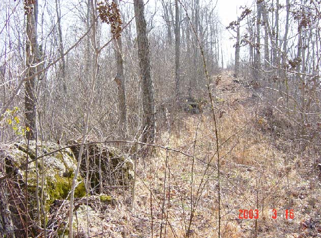 between two hills, this view is "uphill". The cleared path is a logging road that was used within the