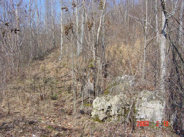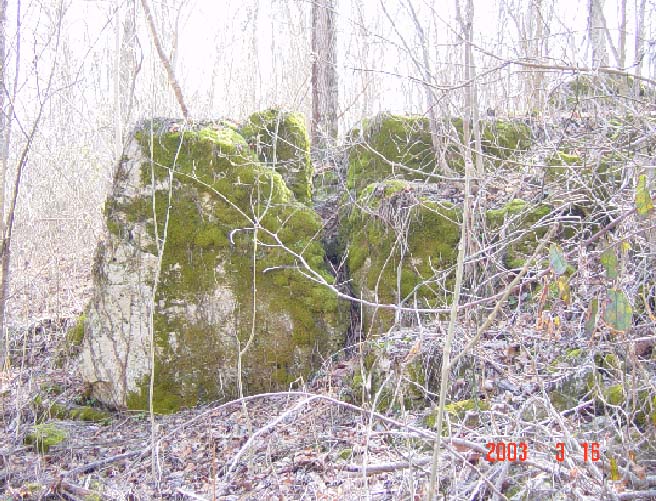 The largest boulders of the Muttonbluff are less than 100 feet south of the barbecue rocks. They are