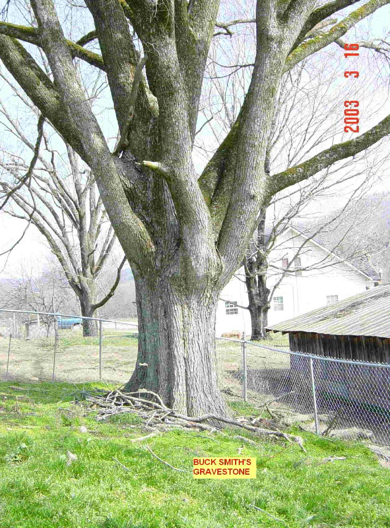 "Cemeteries of Trousdale County, Tennessee", 1996, Buck is buried five feet south of the large elm tree