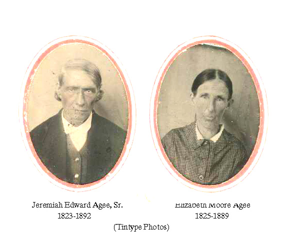 Jeremiah Edward Agee, Sr. married Elizabeth Moore, daughter of John Moore and Nancy Upton.