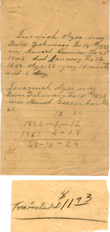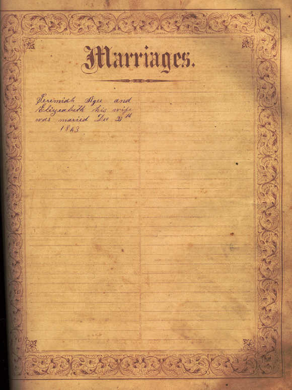 Jeremiah Agee and Elizabeth his wife was married Dec. 21st, 1843.