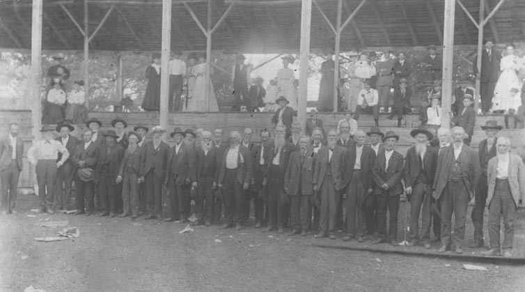 with beard in front of boy, D. L. White, short may in gray, Richard