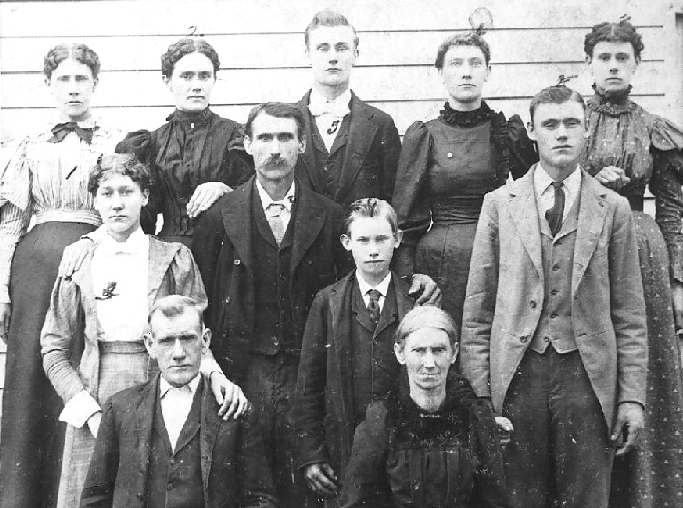 Front Row: Alonzo Foster Cutrell, Myra Agatha Cutrell, Abbie Elnora Cutrell.