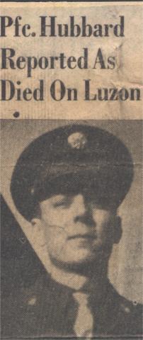 June 1945. Pfc. Norman D. Hubbard died of wounds received in the battle of Luzon