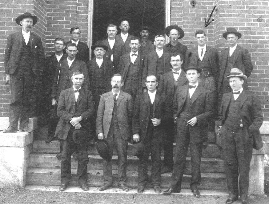 Pictured is a meeting of gentlemen at the Russell Hill Presbyterian Church. The Russell Hill