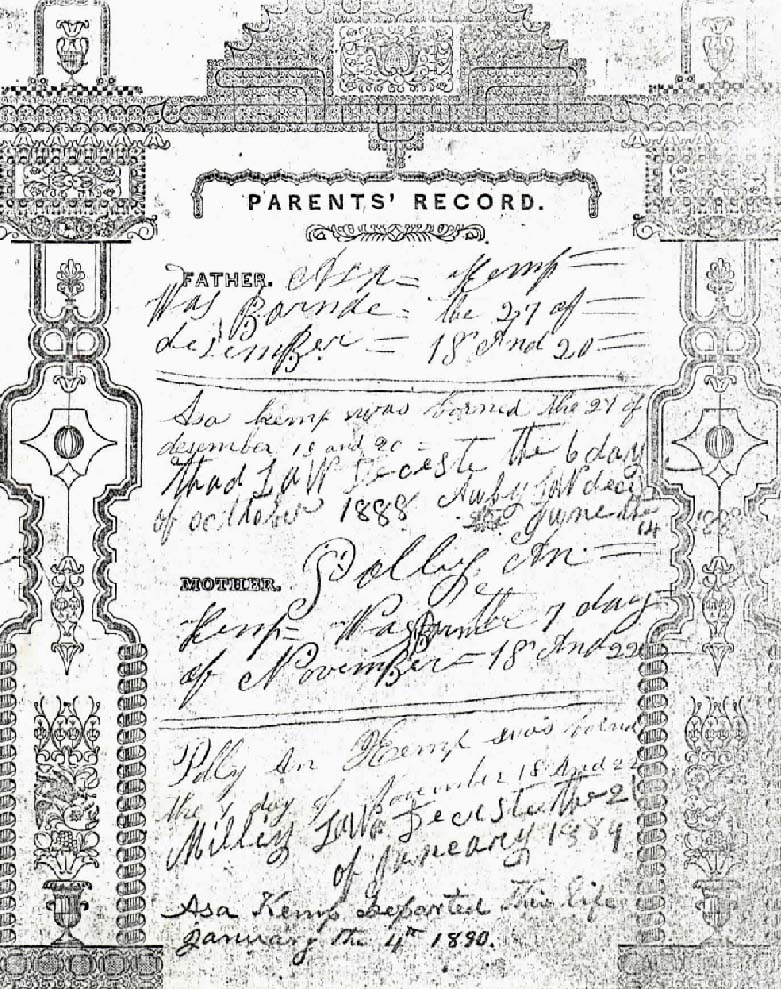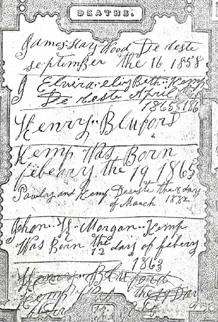 Note* a daughter Milly Kemp married Thad Law whose death is on front page