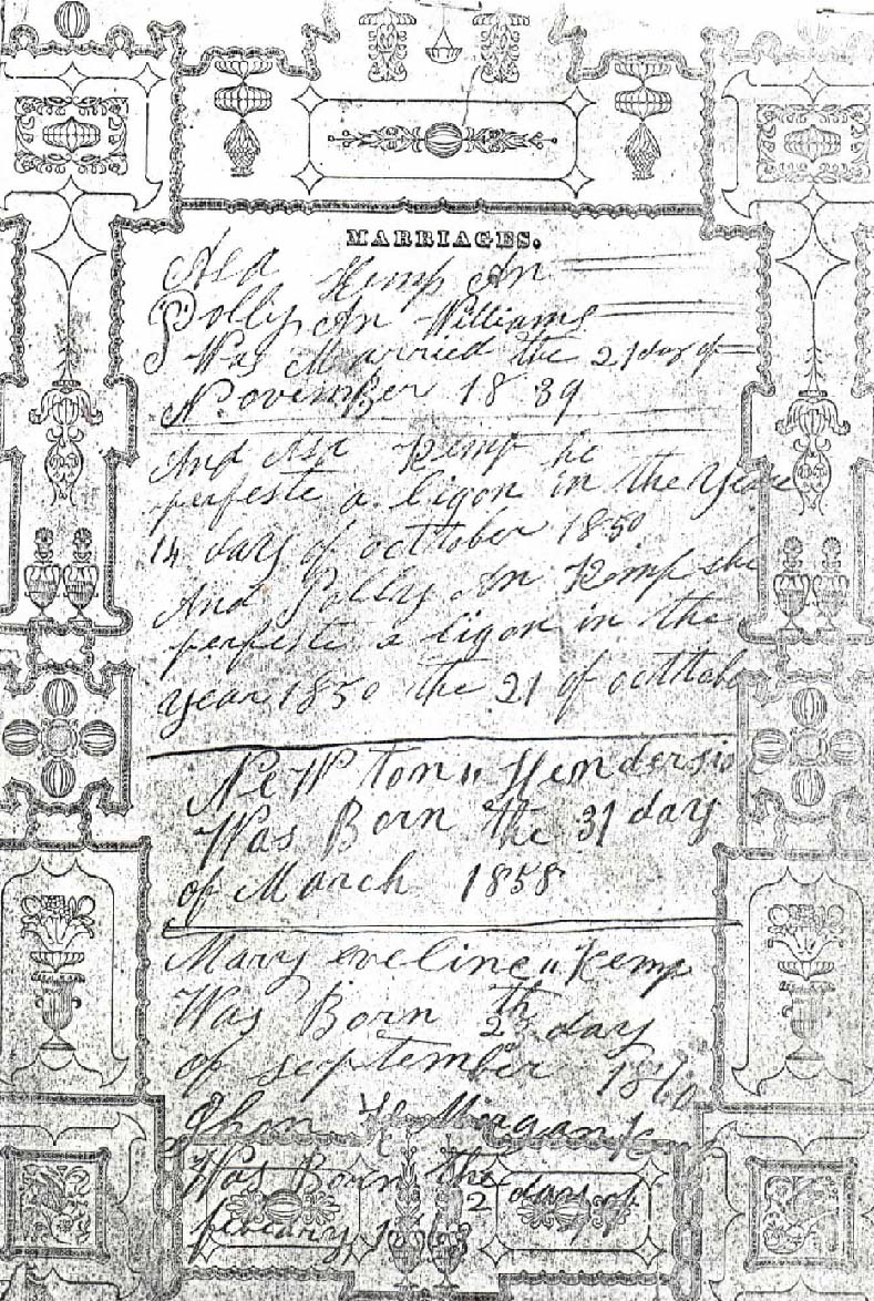 Mary Eveline Kemp married Joesph Stevenson/Stephenson/Steverson