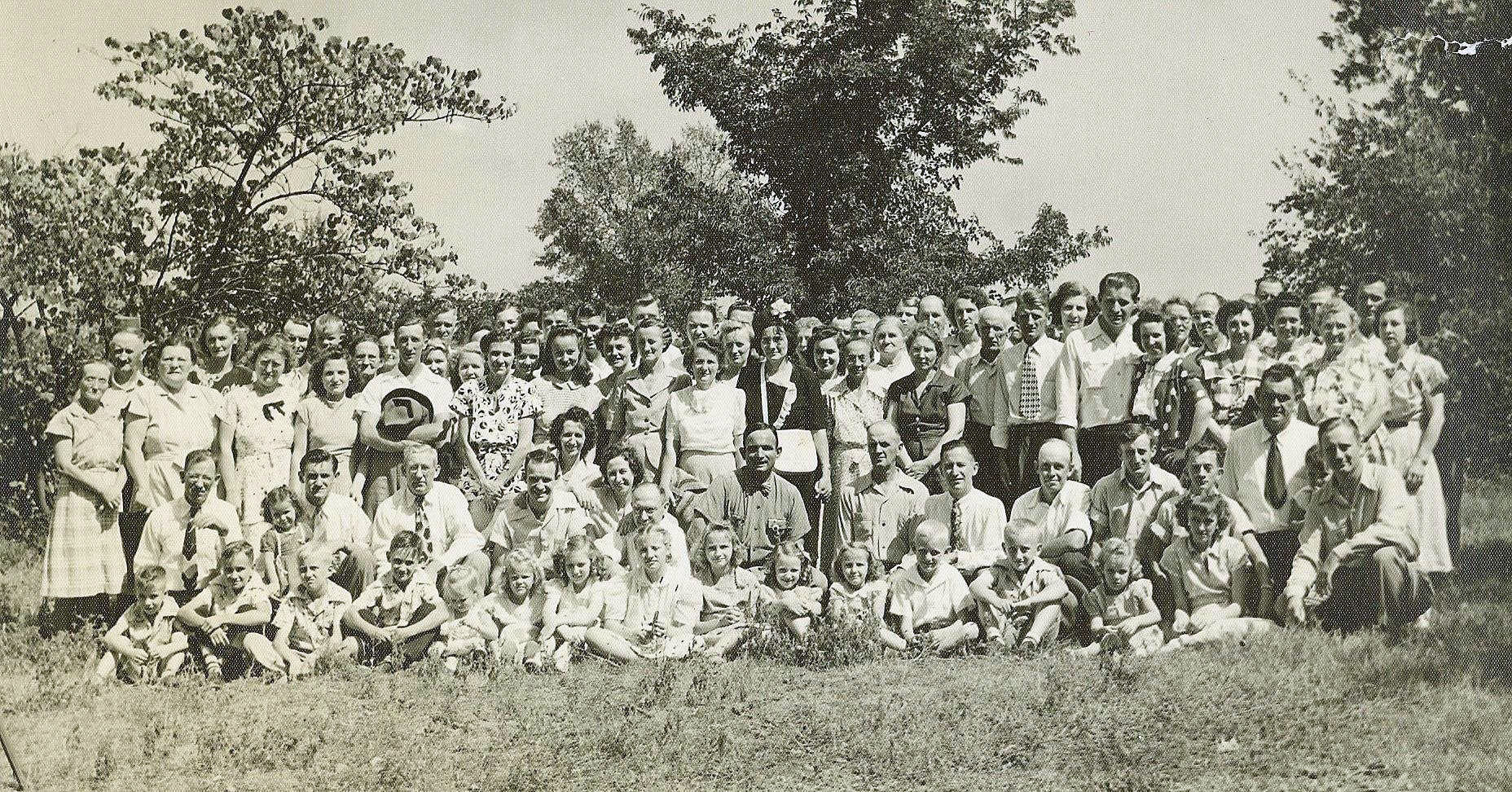 Row 2: Alberta Piper Downs, Evelyn Piper holding Wirt Piper, Jr., Clyde Russell, Woody Piper,