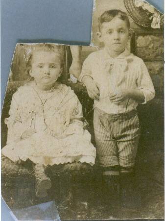 In 1900, my Grandfather, Boyd K. Andrews and his sister Mary Otheldra Andrews were living with their maternal aunt, Julia A. [Boulton] Gibbs. Julia [Boulton] Gibbs was the sister of Boyd & Mary Andrews’ mother, Hattie Cornelia [Boulton] Andrews, the daughters of Napoleon B. Boulton and his wife Lucy J. [Williams]. Both the Boultons and Williams were early settlers in Smith Co. Boyd Andrews remained friends with his 1st cousin, Gertie L. [Gibbs] Scruggs throughout his life. Gertie was born April 23, 1888, and died July 22, 1979, and is buried in the Gordonsville Cemetery, Smith Co., TN. Below is a photograph of Boyd K. Andrews and Gertie [Gibbs] Scruggs as children in 1890: