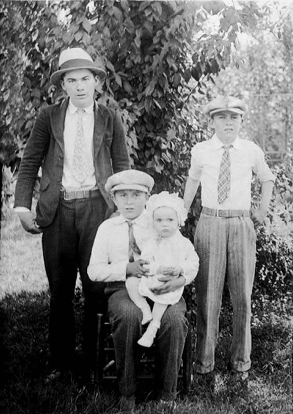 Brice and Claude Hackett Shoulders with sons Roy and Dayton. Brice was born in 1894 and died in 1973.