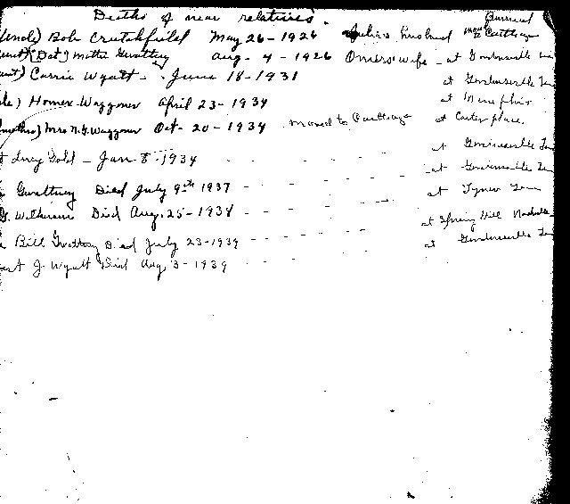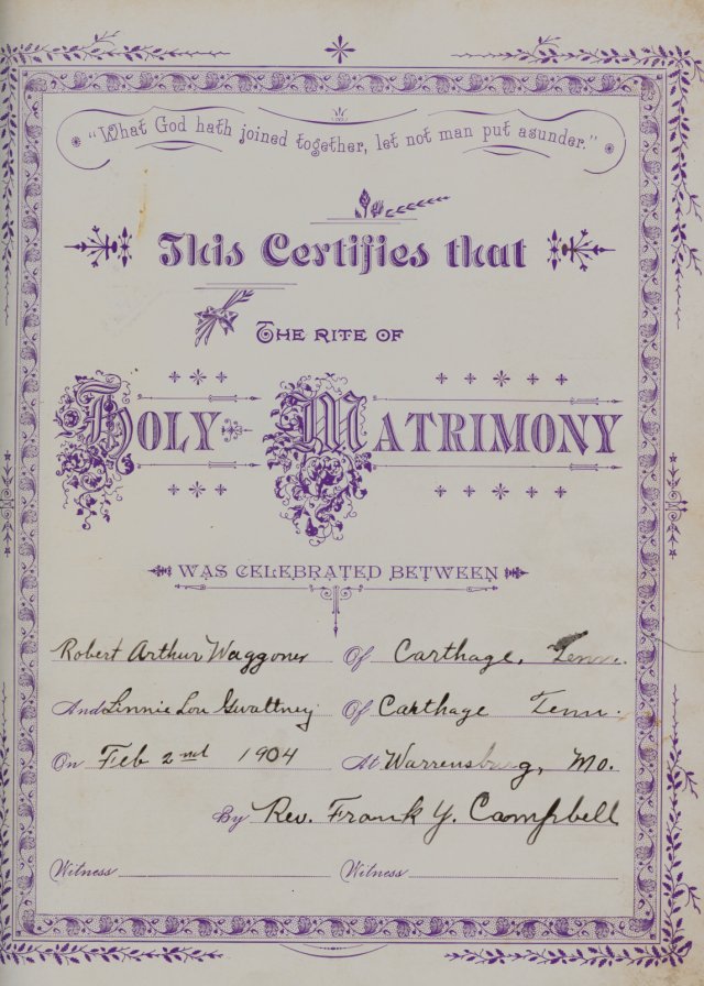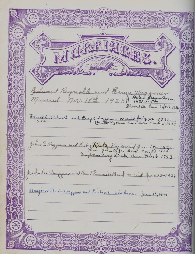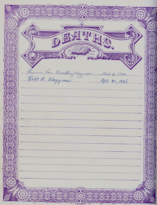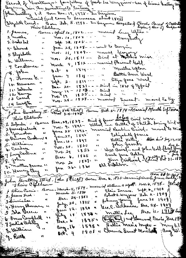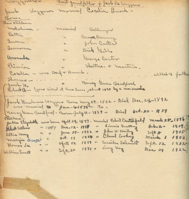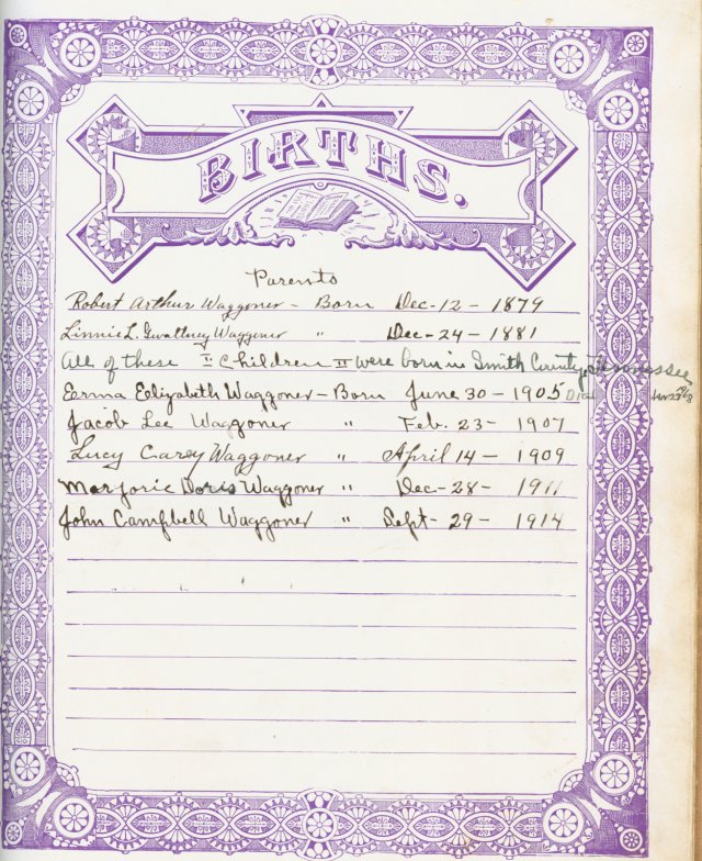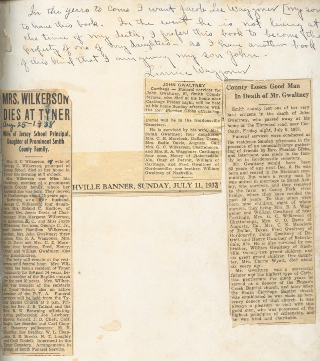 She left a family Bible in which she had recorded three generations of both the Waggoner and Gwaltney
