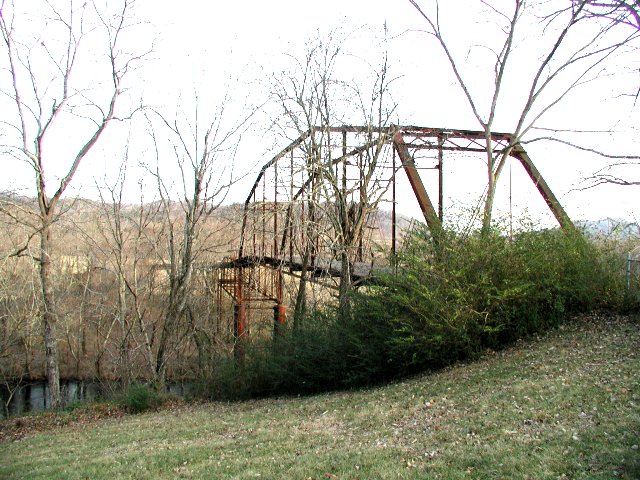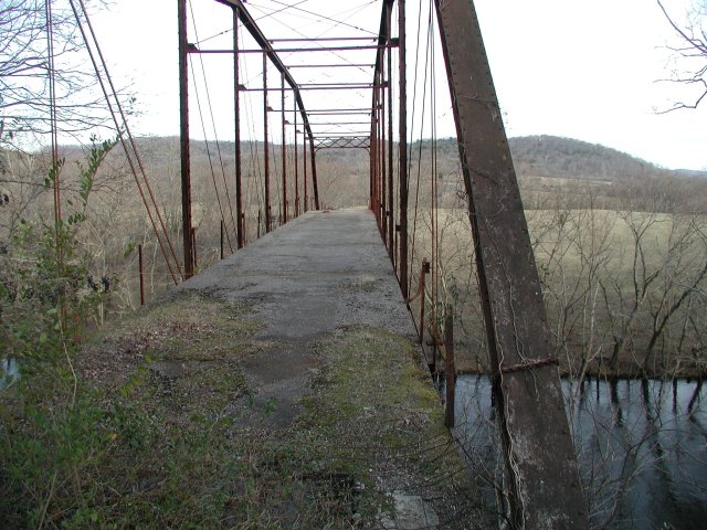 crossing the Caney Fork River. This one lane wooden floor bridge was completed in April, 1900