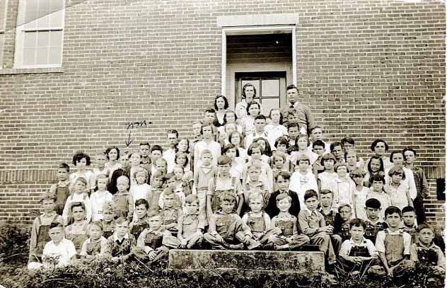 are not identified but the teachers standing at the rear are Elmer Winfree, Oleta Gwaltney and Irene ? .