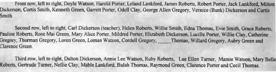 home of my grandparents, John and Laura Smith Dickerson. The school was heated by a big pot-bellied, coal