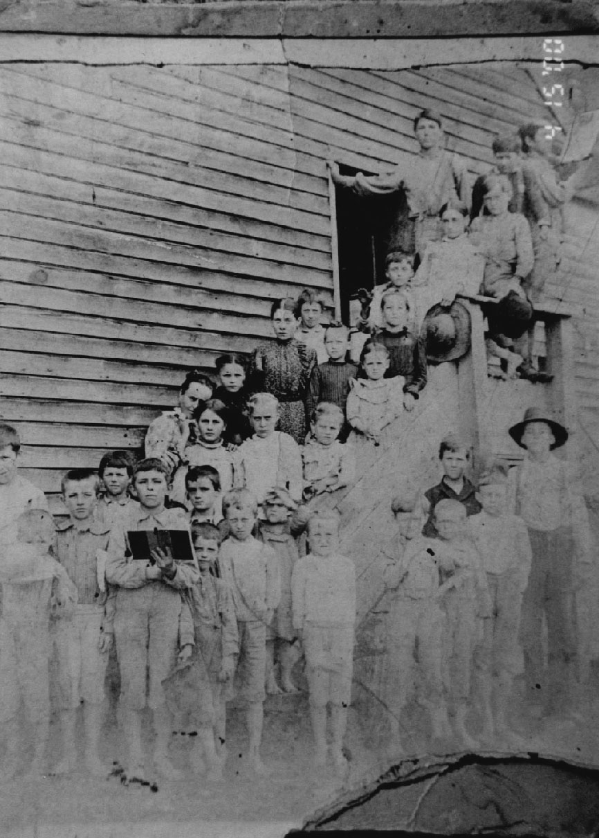the only known student and he is standing at the bottom center of the picture. He was in the first grade.